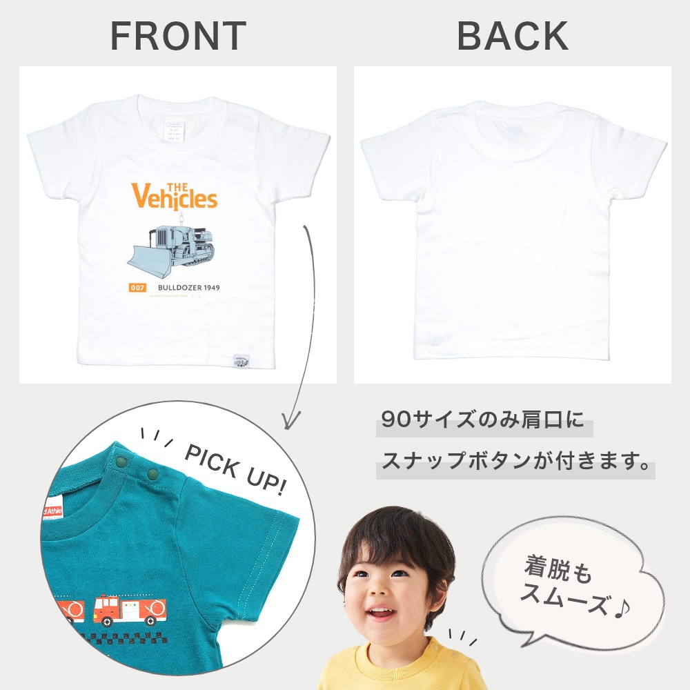 ブルドーザー好きな男の子に必見! かわいさ満点のブルドーザーTシャツが登場です。 お子様のお気に入りになること間違いなしです!!