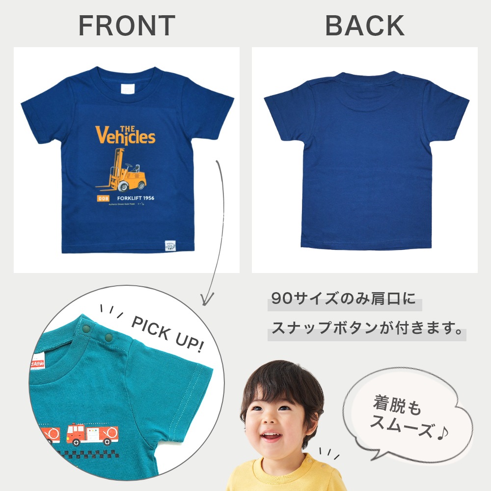 フォークリフト好きな男の子にぴったりの一枚、 お子様の成長に合わせてサイズを選んでいただけるので、 長く着用していただけます。 保育園、幼稚園やお出かけ、 通園通学時にも大活躍間違いなし!