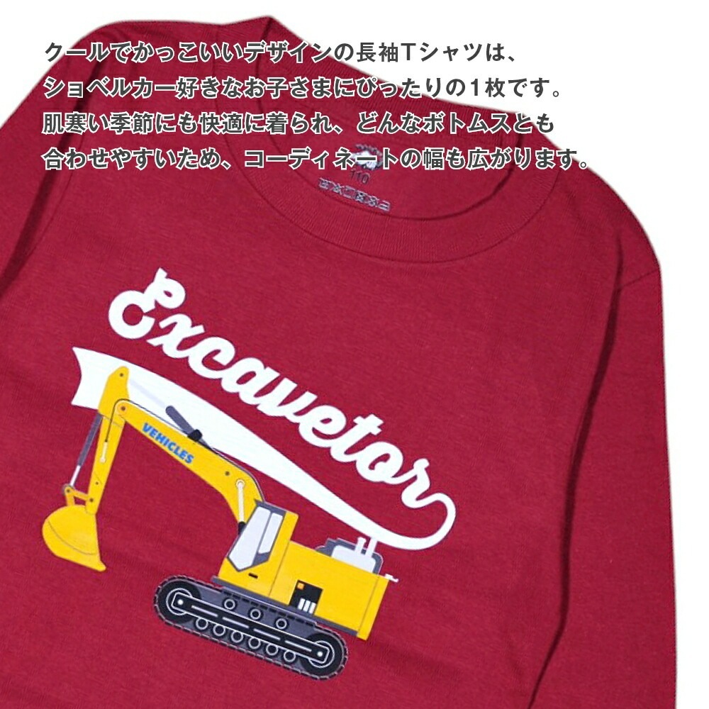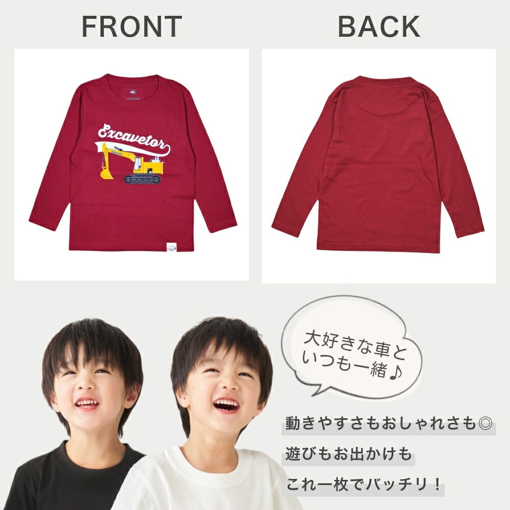 クールでかっこいいデザインの長袖Tシャツは、 ショベルカー好きなお子さまにぴったりの1枚です。 肌寒い季節にも快適に着られ、どんなボトムスとも合わせやすいため、コーディネートの幅も広がります。