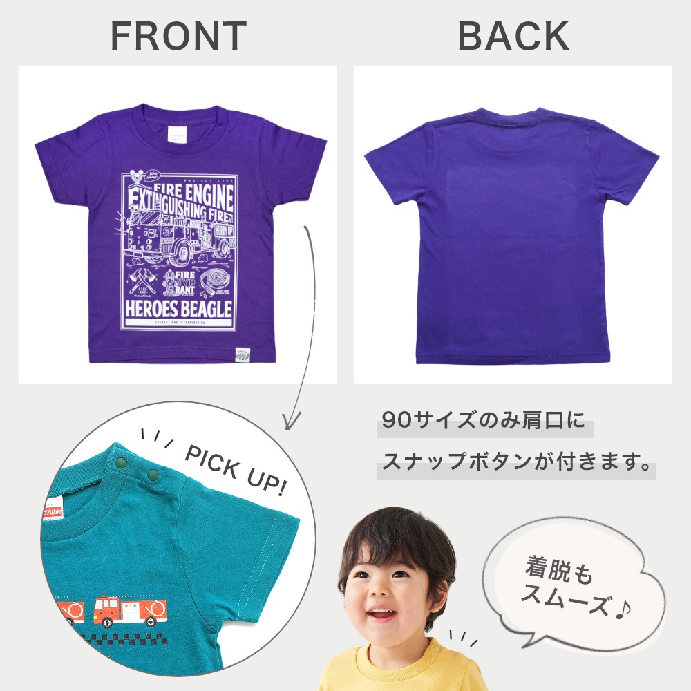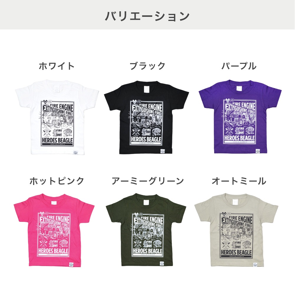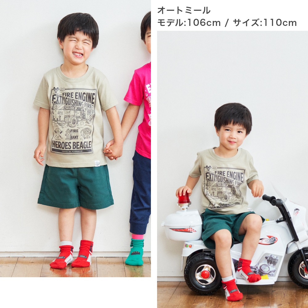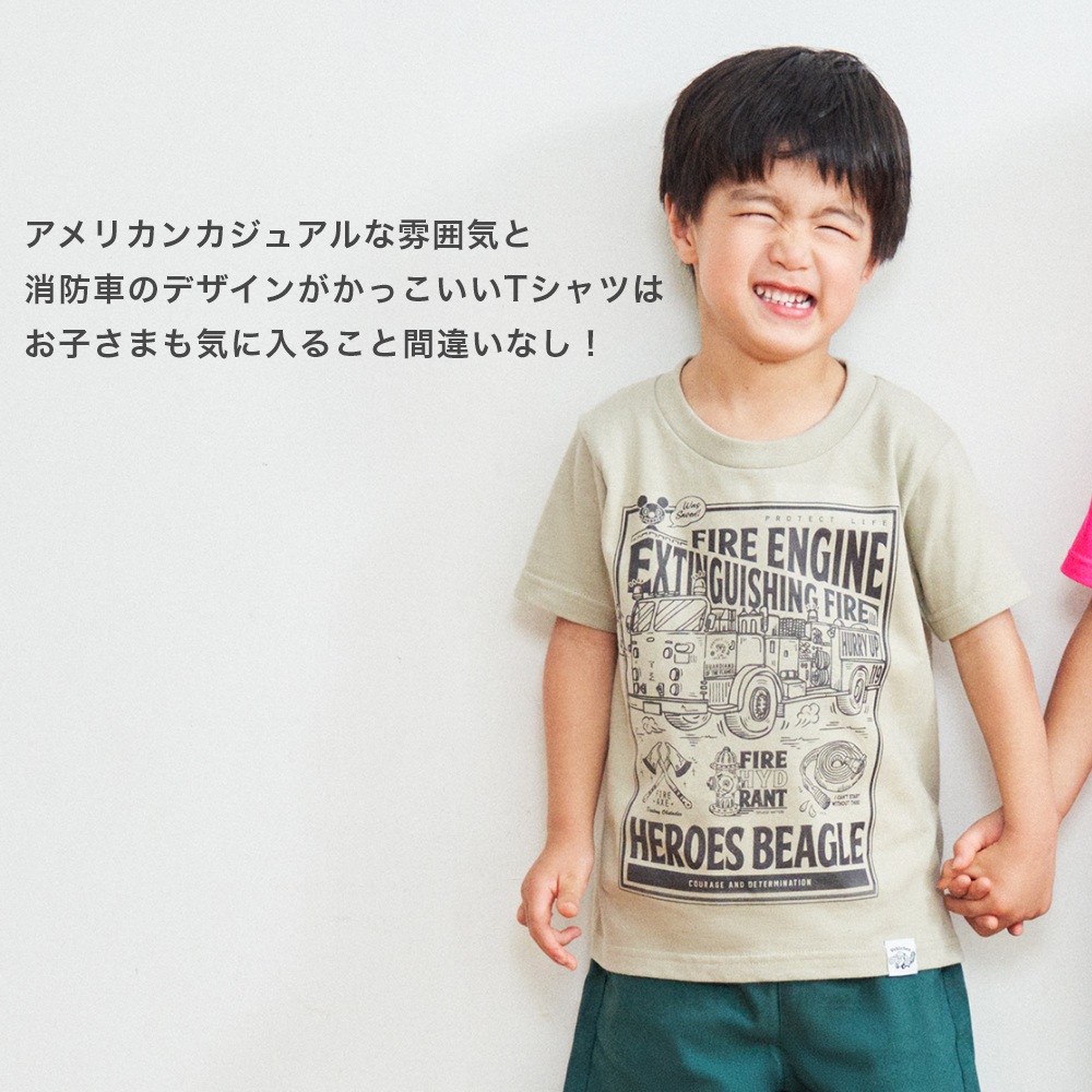 アメリカンカジュアルな雰囲気と 消防車のデザインがかっこいいTシャツは お子さまも気に入ること間違いなし!