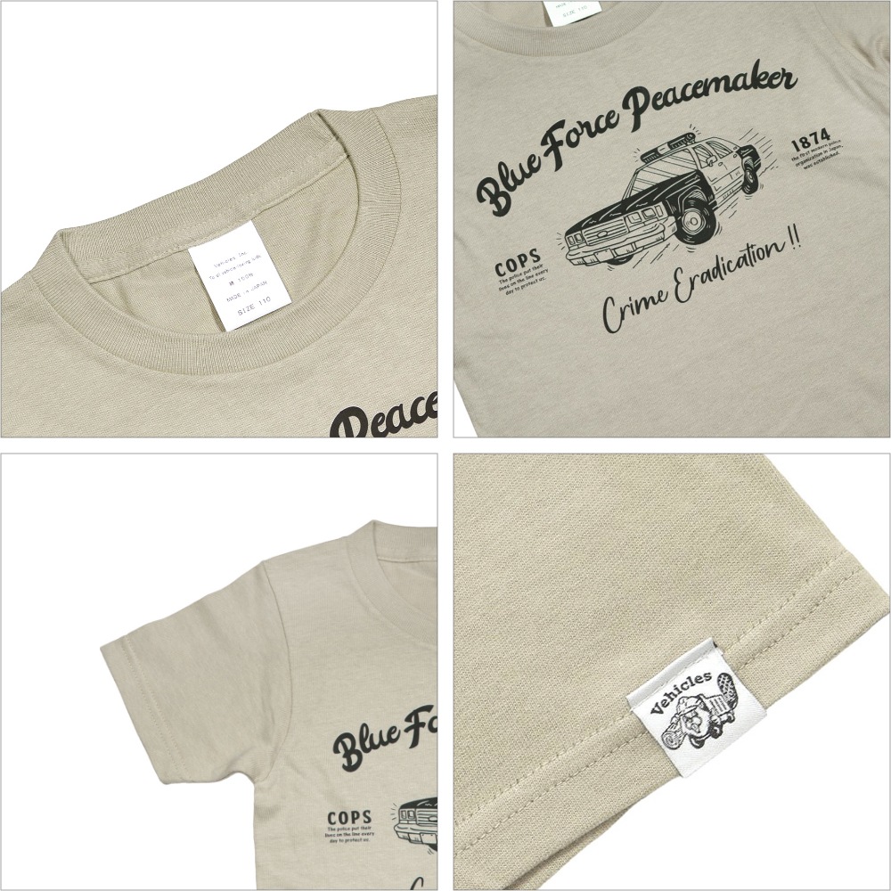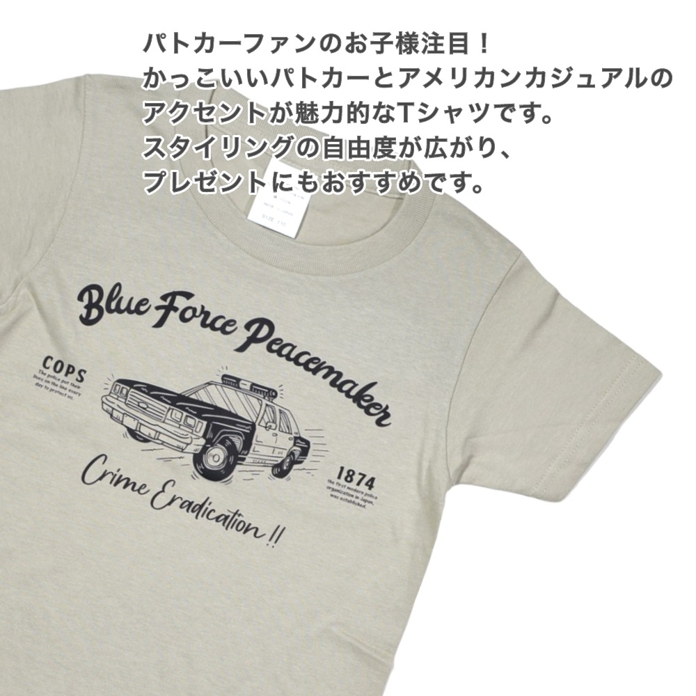 パトカーファンのお子様注目! かっこいいパトカーとアメリカンカジュアルのアクセントが魅力的なTシャツです。 スタイリングの自由度が広がり、プレゼントにもおすすめです。