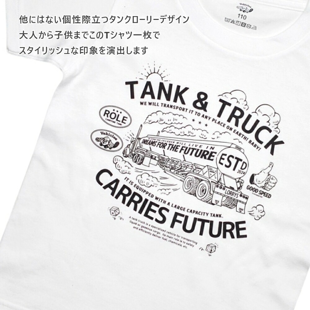 他にはない個性際立つタンクローリーデザイン 大人から子供までこのTシャツ一枚でスタイリッシュな印象を演出します